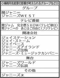 ジャニーズ ファンジャニーズ 名称ジャニーズ ジャニーズ」名称完全消滅…事務所の新体制イメージ図―ジャニーズ スポニチジャニーズ Sponichiジャニーズ Annexジャニーズ 芸能ジャニーズ ジャニーズ】社名変更へ?関ジャニ∞などのグループ名は?元文春・中村竜太郎氏が読む今後の展開「ファンの気持ちに配慮するかもしれない」ジャニーズ |ジャニーズ TBSジャニーズ ジャニーズ NEWSジャニーズ DIGジャニーズ マロン白書【公式】ジャニーズ onジャニーズ X:ジャニーズ 最新『マロン白書Crystal』ジャニーズ 今週あったジャニーズの出来事を話しています
