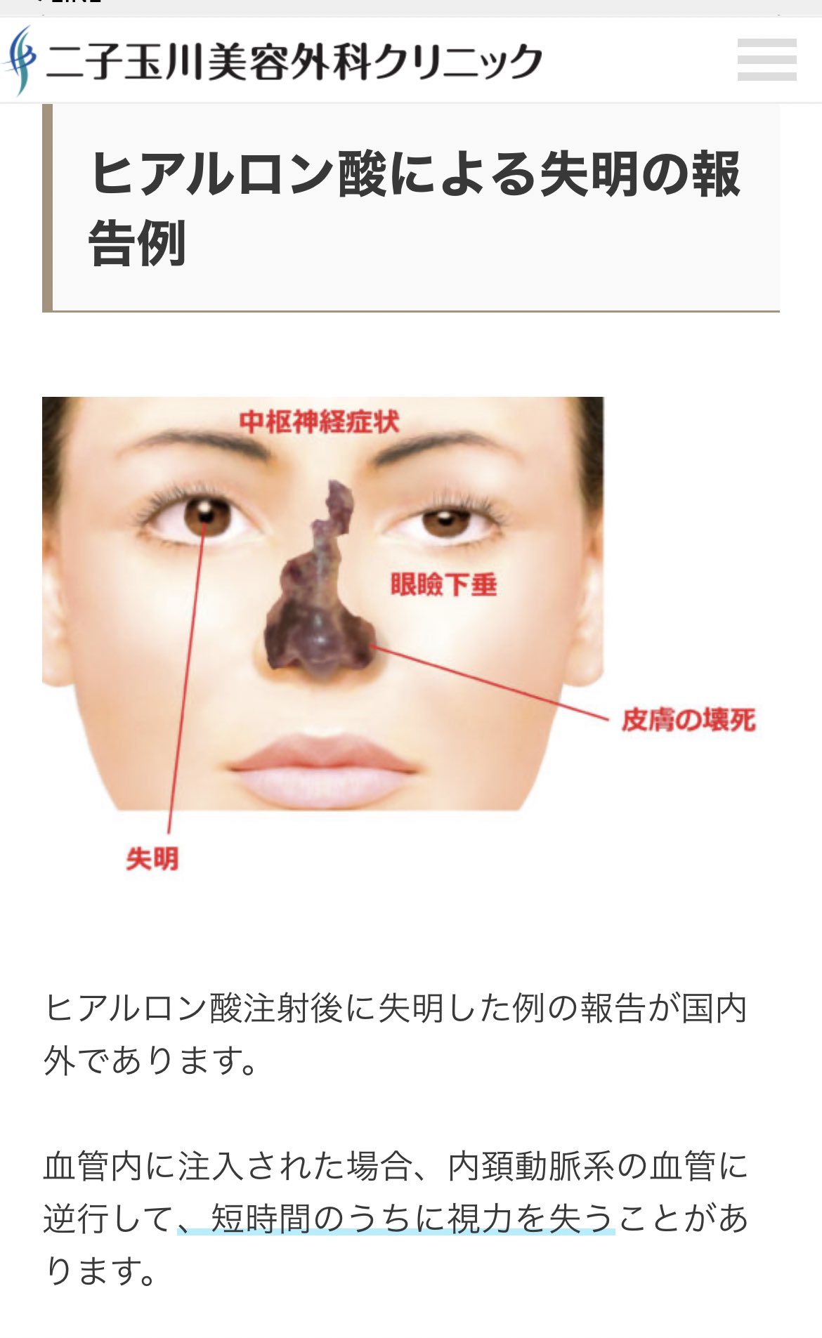 ヒアルロン 酸ヒアルロン 失明ヒアルロン ヒアルロン酸フィラー注射後、瞬時に失明する危険性と対処ヒアルロン |ヒアルロン たける眼科ヒアルロン |ヒアルロン 福岡市早良区ヒアルロン 高取商店街[西新駅/藤崎駅]ヒアルロン ヒアルロン酸注入で失明したりしませんか?というご質問ヒアルロン |ヒアルロン Dr.Iwakiのフィラー道場ヒアルロン ぷりちゃん💛ヒアルロン вヒアルロン X:ヒアルロン „ヒアルロン酸の失明リスク️📝ヒアルロン ・血管内に注入された場合、短時間のうちに視力を失うことがあるヒアルロン ・失明をきたした殆どのケースは回復が見られなかったヒアルロン