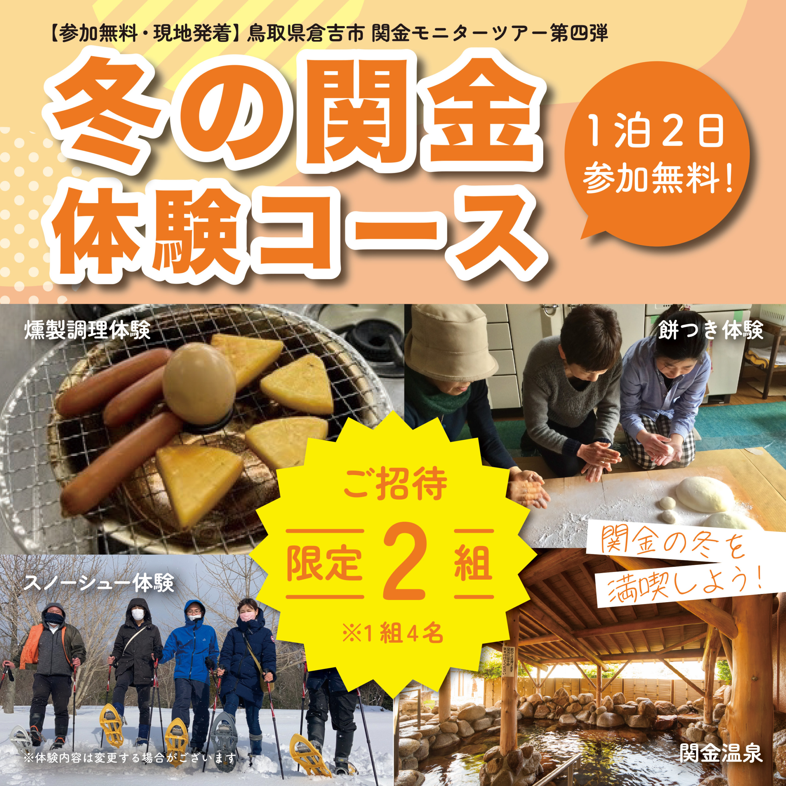 無料 モニター無料 ツアー無料 無料モニターツアー参加者募集!!無料 無料 愛媛県松山市]1月21日と2月5日開催。興居島・三津浜で短時間でディープに過ごす非日常を体験を。地域に触れ合い、食べて・飲んで・話そう!無料 |無料 無料 トラベルスポット無料 鎌倉ときめきスタンプラリー】イベント概要&無料モニターツアーのご紹介無料 -無料 古都ごとく鎌倉無料 参加無料・現地発着】鳥取県倉吉市無料 関金モニターツアー第四弾『冬の関金体験コース』(222〜23)1泊2日無料 -無料 倉吉観光情報無料 多可町の自然の中で日々の疲れをリセット。1泊2日朝夕食付きモニターツアー参加者募集無料 |いいものタウン無料 -