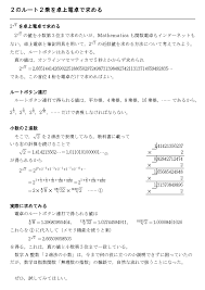 2 の2 ルート2 22 乗2 二重根号の外し方2 |2 ルートをつけるということは12乗するということ2 |2 岩井の数学ブログ2 ルートの中身が絶対値に!?なんで場合分けが必要なのか2 |2 数スタ2 sqrt4=-2\)を実感する。多価関数への誘い。2 |2 数学・統計教室の和から株式会社2 機械式計算機による平方根の計算2 高校数学Ⅱ】「n乗根」2 |